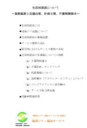 | 販売レジュメ名称 | 生活相談員の業務について 〜業務範囲と会議出席・計画書立案・介護請求〜 | ||
